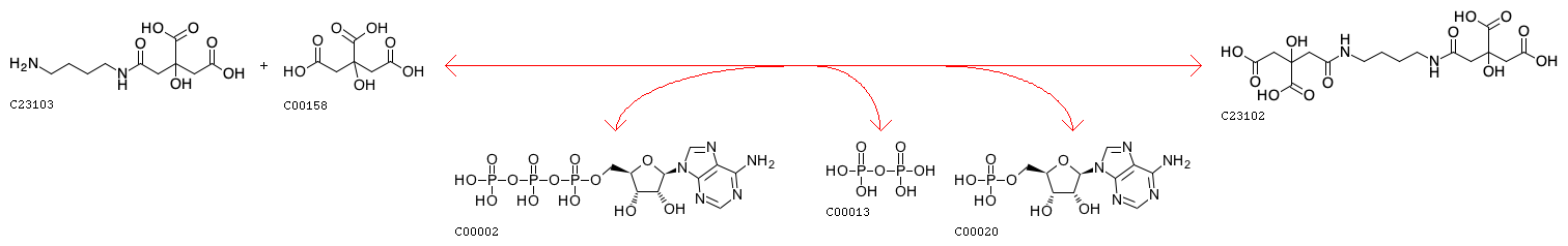 N-Citryputrescine + Citrate + ATP <=> Rhizoferrin + Diphosphate + AMP
