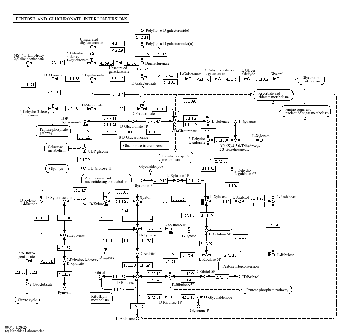 C14899 (3-Dehydro-L-gulonate 6-phosphate) C03033 (beta-D-Glucuronoside) C00817 (D-Altronate) C00103 ... |