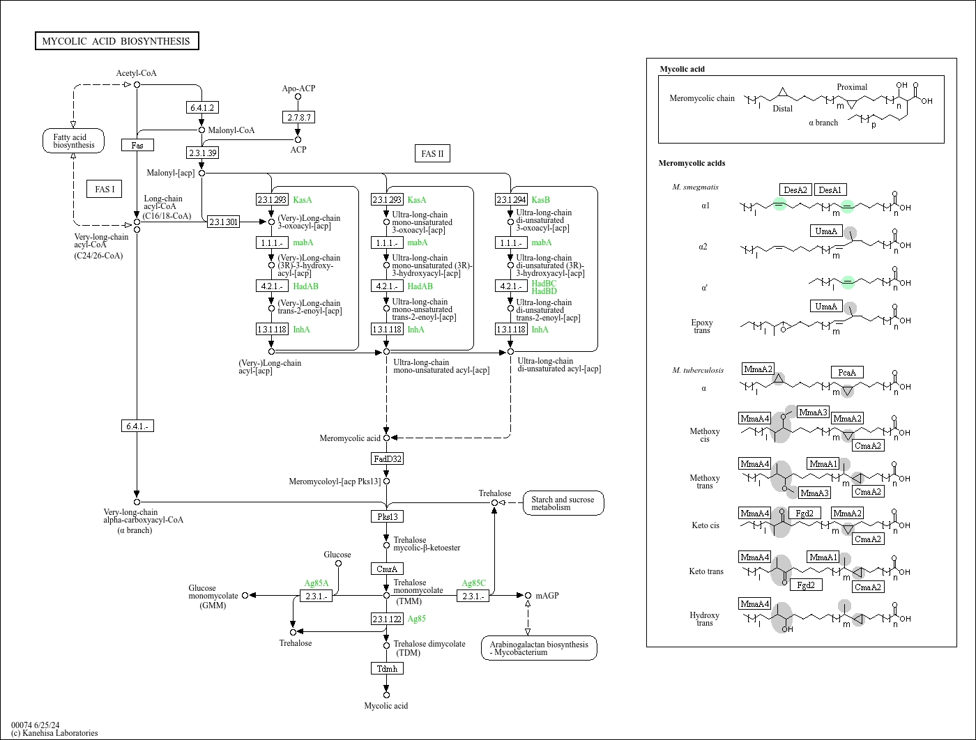 Mycolic acids are alpha-alkyl, beta-hydroxy long-chain fatty acids, which are essential components o... |