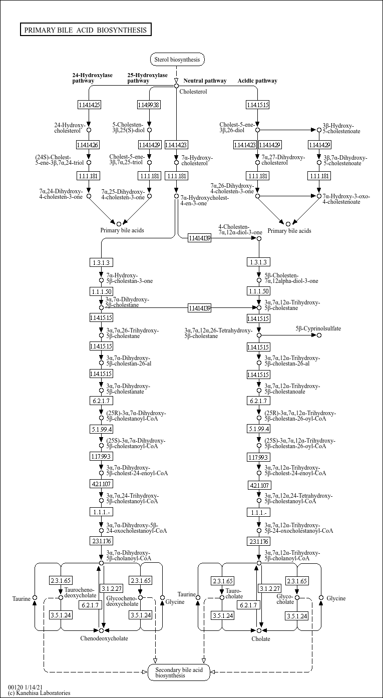 C21449 (Lithocholoyl-CoA) C05122 (Taurocholate) C05466 (Glycochenodeoxycholate) C05465 (Taurochenode... |