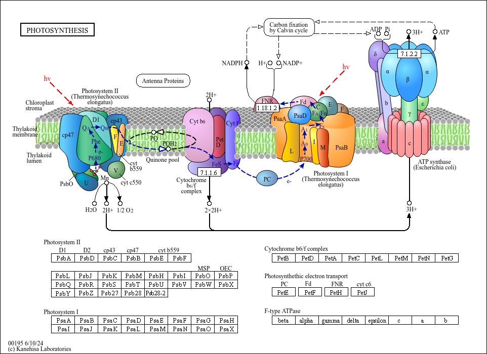 PsaH Antenna Proteins PetJ Psb28-2 Psb28 Psb27 PsbS PsbR PsaX PsbP NADPH NADP+ 1.18.1.2 2×2H+ epsilo... |