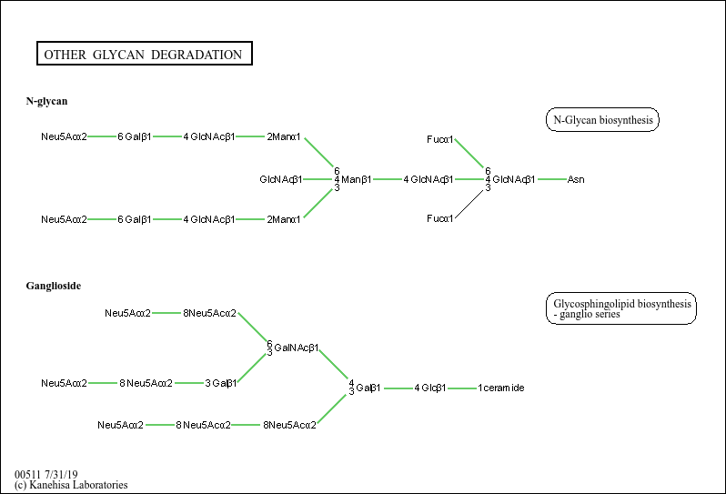 10825 (NEU3), 129807 (NEU4), 4758 (NEU1), 4759 (NEU2), H00142 (Sialidosis), H00422 (Glycoproteinoses)