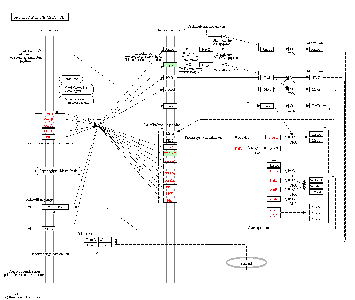 The beta-lactam antibiotics are the most widely used group of antibiotics, which exert their effect by interfering with the structural crosslinking of peptidoglycans in bacterial cell walls. Over the past decades, a rapid increase in the number of beta-lactam-resistant clinical isolates is observed. Bacterial resistance to beta-lactam antibiotics can be achieved by any of the following strategies: producing inactivating enzymes called beta-lactamases, altering the beta-lactam targets of penicillin-binding proteins (PBPs), reducing transport of beta-lactams into the periplasmic space via changes in porins, and using the mechanisms for exclusion of beta-lactams by way of efflux pumps. Resistance may result from intrinsic properties of organisms, through gene mutations, and through plasmid- and transposon-specified genes.