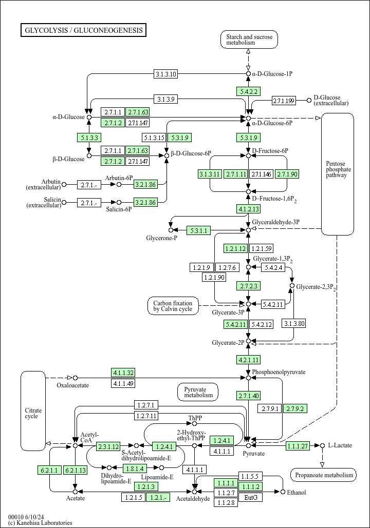 M00002], which is found in almost all organisms and which sometimes contains operon structures in bacterial genomes. Gluconeogenesis is a synthesis pathway of glucose from noncarbohydrate precursors. It is essentially a reversal of glycolysis with minor variations of alternative paths [MD: