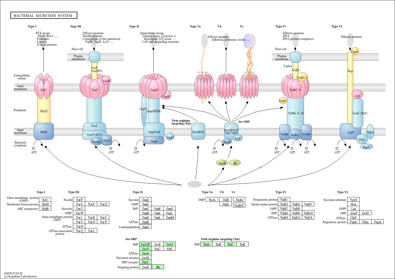 Gram-negative bacteria secrete a wide range of proteins whose functions include biogenesis of organelles, such as pilli and flagella, nutrient acquisition, virulence, and efflux of drugs and other toxins. Six distinct secretion systems have been shown to mediate protein export through the inner and outer membranes of Gram-negative bacteria. These pathways are highly conserved throughout the Gram-negative bacterial species. In Gram-positive bacteria, secreted proteins are commonly translocated across the single membrane by the Sec pathway or the two-arginine (Tat) pathway.
