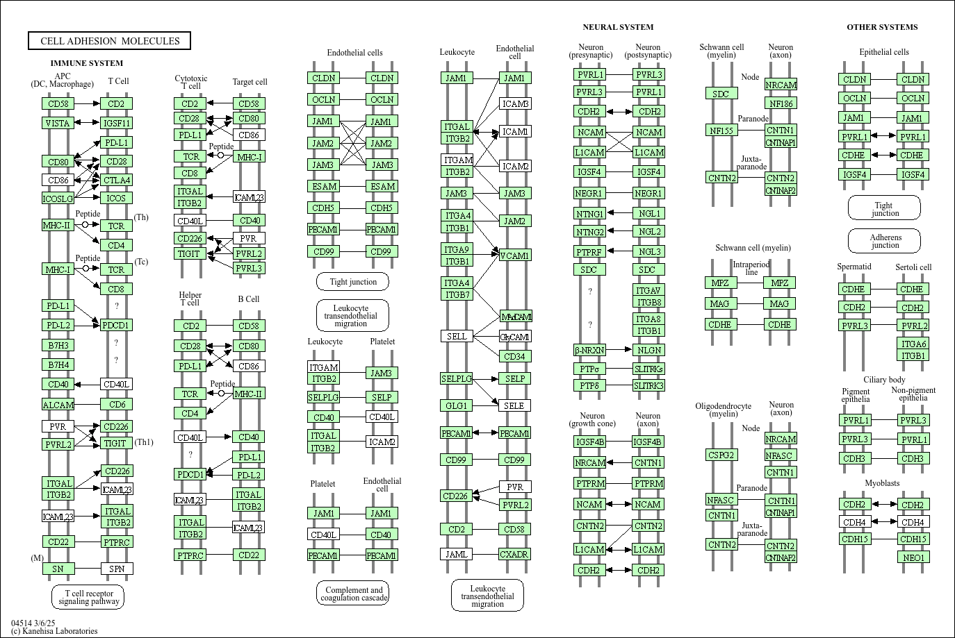 Cell adhesion molecules (CAMs) are (glyco)proteins expressed on the cell surface and play a critical role in a wide array of biologic processes that include hemostasis, the immune response, inflammation, embryogenesis, and development of neuronal tissue. There are four main groups: the integrin family, the immunoglobulin superfamily, selectins, and cadherins. Membrane proteins that mediate immune cell–cell interactions fall into different categories, namely those involved in antigen recognition, costimulation and cellular adhesion. Furthermore cell-cell adhesions are important for brain morphology and highly coordinated brain functions such as memory and learning. During early development of the nervous system, neurons elongate their axons towards their targets and establish and maintain synapses through formation of cell-cell adhesions. Cell-cell adhesions also underpin axon-axon contacts and link neurons with supporting schwann cells and oligodendrocytes.