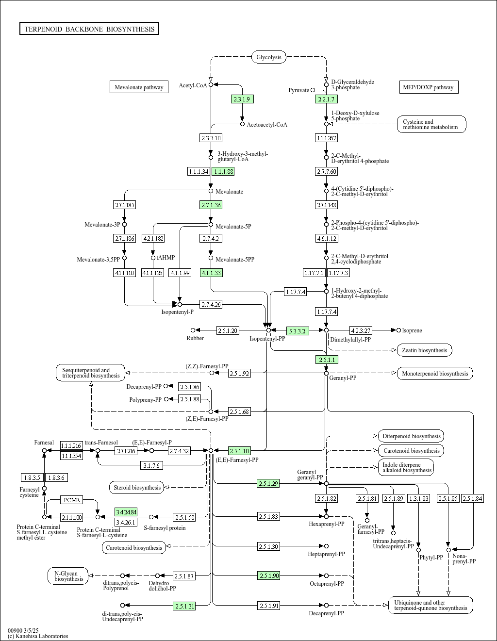 Terpenoids, also known as isoprenoids, are a large class of natural products consisting of isoprene (C5) units. There are two biosynthetic pathways, the mevalonate pathway [MD: