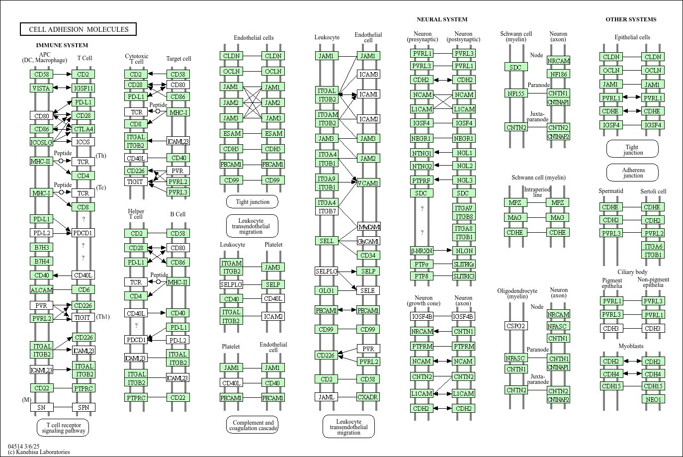 Cell adhesion molecules (CAMs) are (glyco)proteins expressed on the cell surface and play a critical role in a wide array of biologic processes that include hemostasis, the immune response, inflammation, embryogenesis, and development of neuronal tissue. There are four main groups: the integrin family, the immunoglobulin superfamily, selectins, and cadherins. Membrane proteins that mediate immune cell–cell interactions fall into different categories, namely those involved in antigen recognition, costimulation and cellular adhesion. Furthermore cell-cell adhesions are important for brain morphology and highly coordinated brain functions such as memory and learning. During early development of the nervous system, neurons elongate their axons towards their targets and establish and maintain synapses through formation of cell-cell adhesions. Cell-cell adhesions also underpin axon-axon contacts and link neurons with supporting schwann cells and oligodendrocytes.