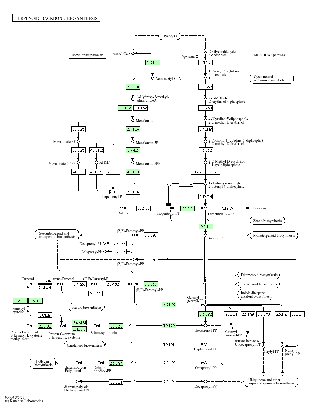 Terpenoids, also known as isoprenoids, are a large class of natural products consisting of isoprene (C5) units. There are two biosynthetic pathways, the mevalonate pathway [MD: