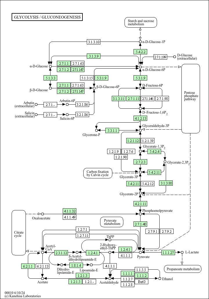 M00002], which is found in almost all organisms and which sometimes contains operon structures in bacterial genomes. Gluconeogenesis is a synthesis pathway of glucose from noncarbohydrate precursors. It is essentially a reversal of glycolysis with minor variations of alternative paths [MD: