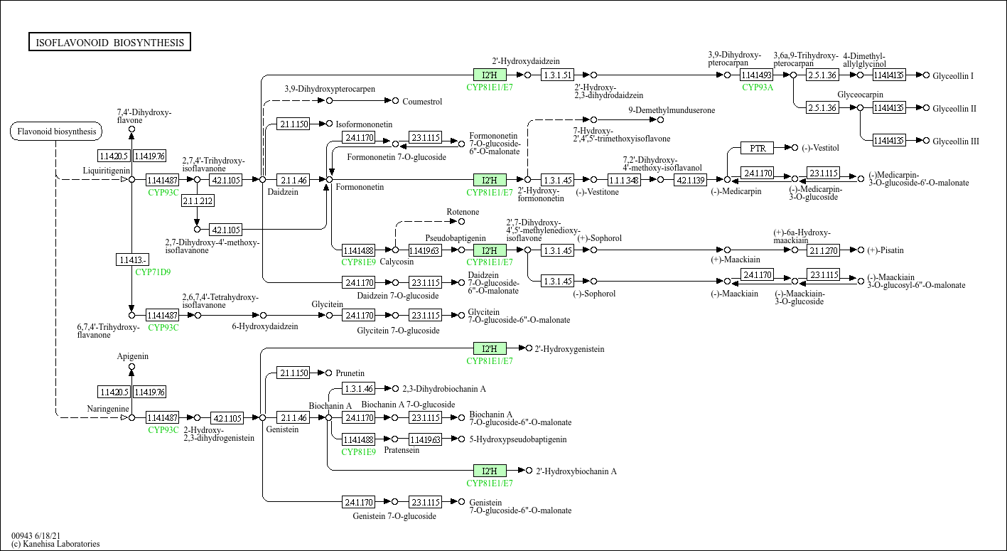 Isoflavonoids are biologically active compounds, such as phytoestrogens, produced by pea family plants. While flavonoids (in the narrow sense) have the 2-phenylchromen-4-one backbone, isoflavonoids have the 3-phenylchromen-4-one backbone with no hydroxyl group substitution at position 2. Isoflavonoids are derived from the flavonoid biosynthesis pathway via liquiritigenin or naringenin.