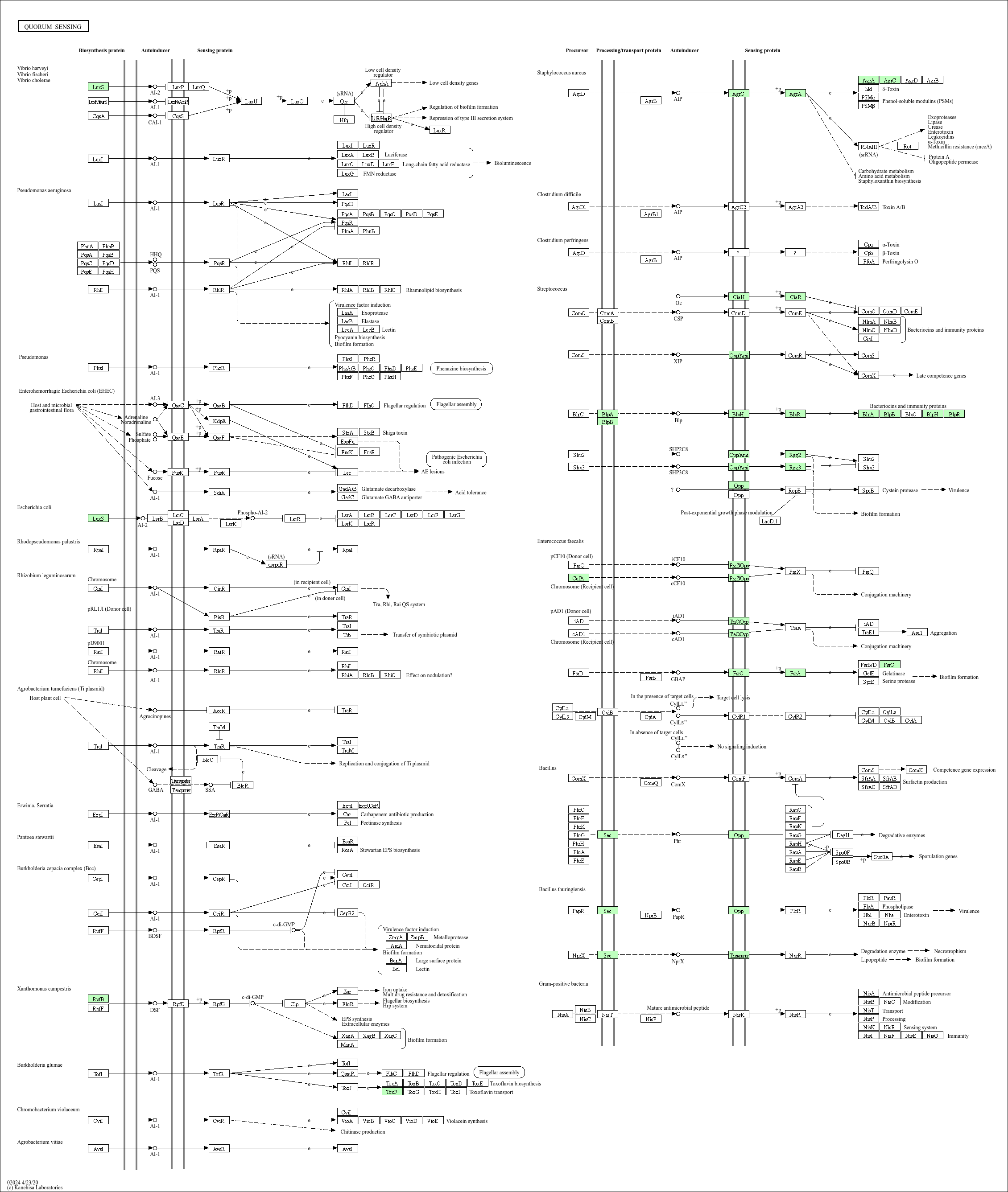 Quorum sensing (QS) is a regulatory system that allows bacteria to share information about cell density and adjust gene expression accordingly. All QS bacteria produce and release chemical signal molecules called autoinducers (AIs) that increase in concentration as a function of cell density. The most commonly studied AIs belong to one of the following three categories: acylated homoserine lactones, also referred to as AI-1, used by Gram-negative bacteria; peptide signals, used by Gram-positive bacteria; and AI-2, used by both Gram-negative and Gram-positive bacteria. QS can be divided into at least 4 steps: production of AIs by the bacterial cell; release of AIs, either actively or passively, into the surrounding environment; recognition of AIs by specific receptors; and leading to changes in gene regulation once they exceed a threshold concentration. The processes controlled by QS include virulence, competence, conjugation, antibiotic production, motility, sporulation, and biofilm formation.