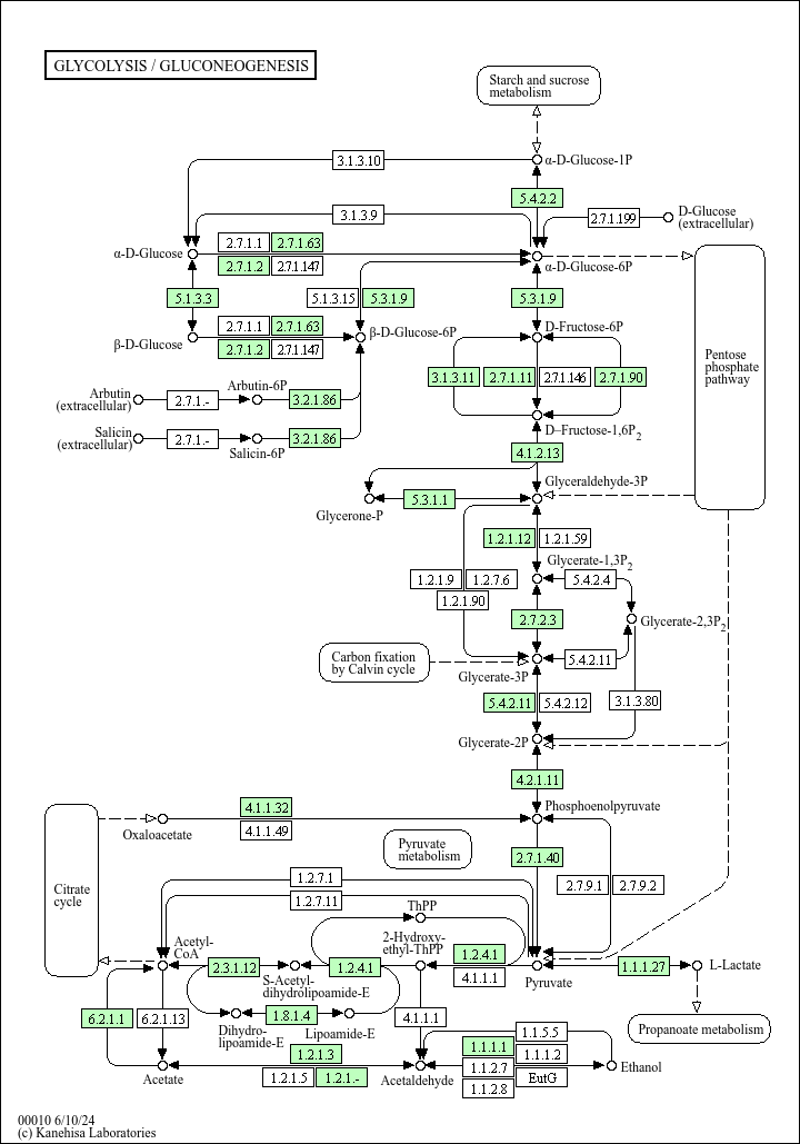 M00002], which is found in almost all organisms and which sometimes contains operon structures in bacterial genomes. Gluconeogenesis is a synthesis pathway of glucose from noncarbohydrate precursors. It is essentially a reversal of glycolysis with minor variations of alternative paths [MD: