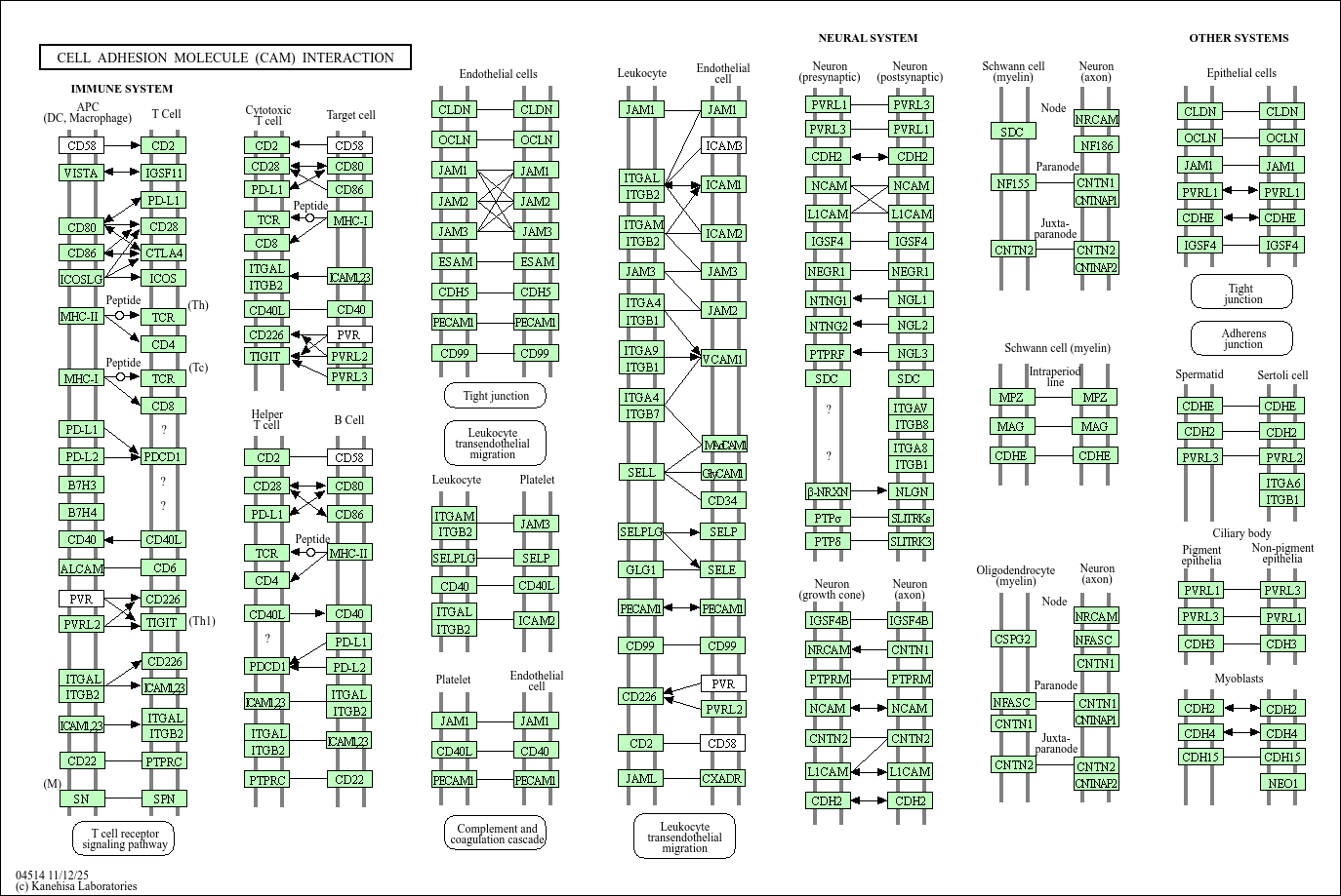 Cell adhesion molecules (CAMs) are (glyco)proteins expressed on the cell surface and play a critical role in a wide array of biologic processes that include hemostasis, the immune response, inflammation, embryogenesis, and development of neuronal tissue. There are four main groups: the integrin family, the immunoglobulin superfamily, selectins, and cadherins. Membrane proteins that mediate immune cell–cell interactions fall into different categories, namely those involved in antigen recognition, costimulation and cellular adhesion. Furthermore cell-cell adhesions are important for brain morphology and highly coordinated brain functions such as memory and learning. During early development of the nervous system, neurons elongate their axons towards their targets and establish and maintain synapses through formation of cell-cell adhesions. Cell-cell adhesions also underpin axon-axon contacts and link neurons with supporting schwann cells and oligodendrocytes.