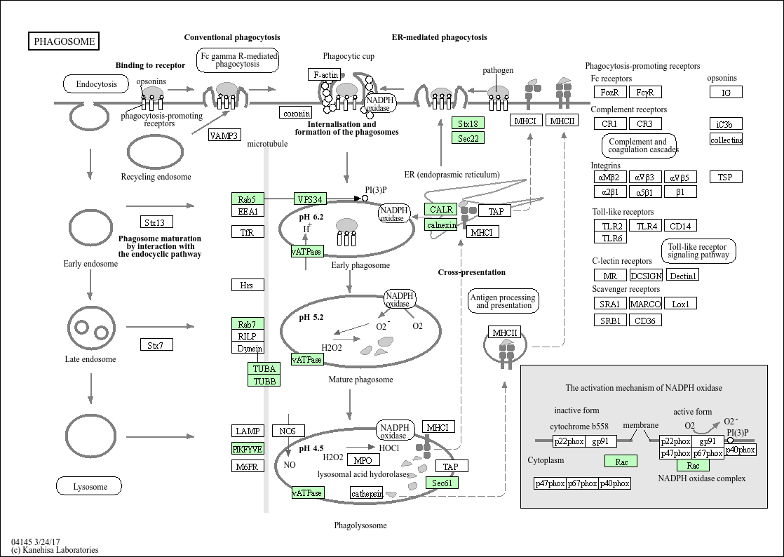 Phagocytosis is the process of taking in relatively large particles by a cell, and is a central mechanism in the tissue remodeling, inflammation, and defense against infectious agents. A phagosome is formed when the specific receptors on the phagocyte surface recognize ligands on the particle surface. After formation, nascent phagosomes progressively acquire digestive characteristics. This maturation of phagosomes involves regulated interaction with the other membrane organelles, including recycling endosomes, late endosomes and lysosomes. The fusion of phagosomes and lysosomes releases toxic products that kill most bacteria and degrade them into fragments. However, some bacteria have strategies to escape the bactericidal mechanisms associated with phagocytosis and survive within host phagocytes.
