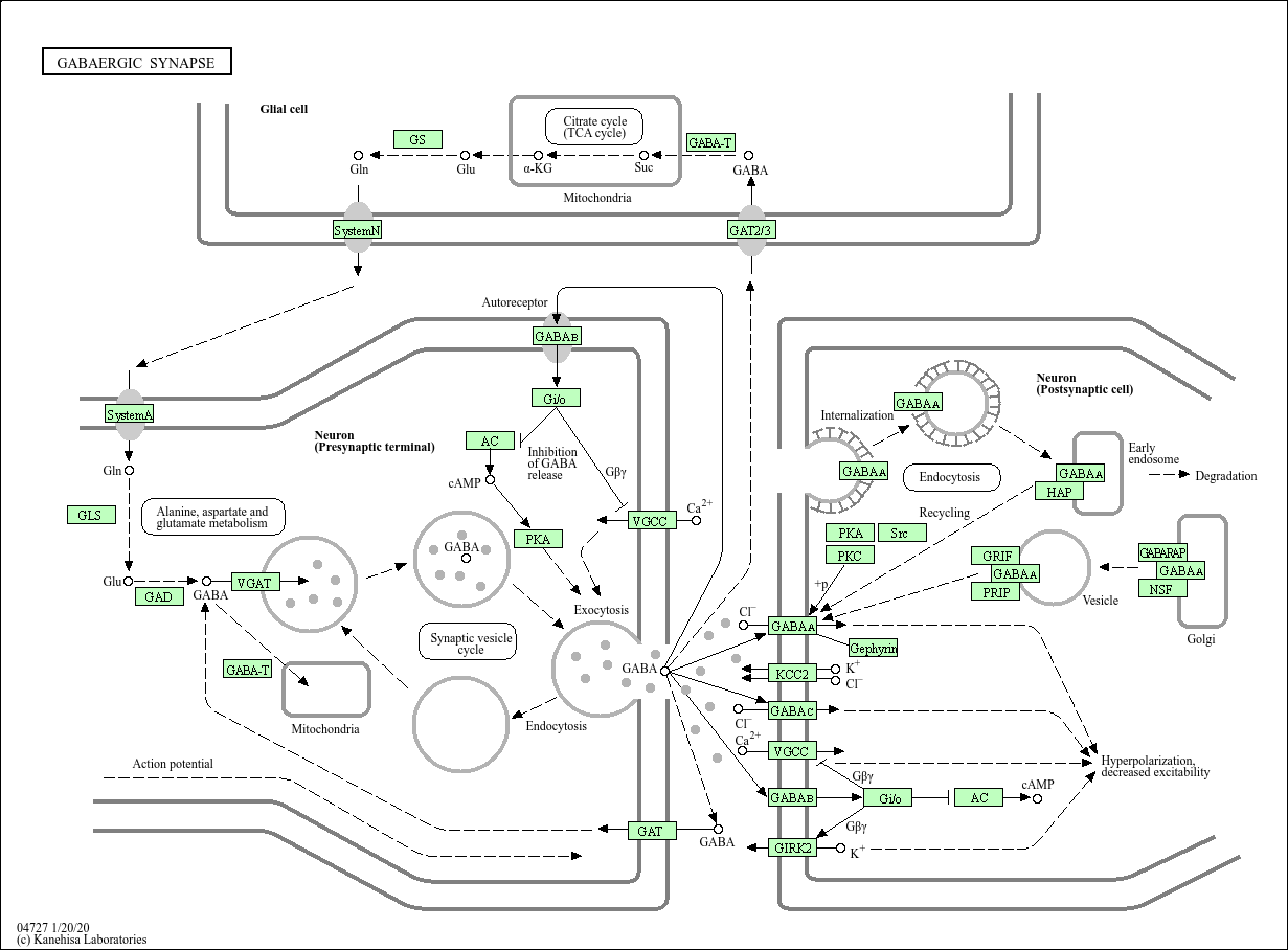 Gamma aminobutyric acid (GABA) is the most abundant inhibitory neurotransmitter in the mammalian central nervous system (CNS). When released in the synaptic cleft, GABA binds to three major classes of receptors: GABAA, GABAB, and GABAC receptors. GABAA and GABAC receptors are ionotropic and mediate fast GABA responses by triggering chloride channel openings, while GABAB receptors are metabotropic and mediate slower GABA responses by activating G-proteins and influencing second messenger systems. GABAA receptors, the major sites for fast inhibitory neurotransmission in the CNS, are regulated by phosphorylation mechanisms, affecting both their functional properties and their cell surface mobility and trafficking. GABA release by the presynaptic terminal is negatively regulated by GABAB autoreceptors, and is cleared from the extracellular space by GABA transporters (GATs) located either on the presynaptic terminal or neighboring glial cells.