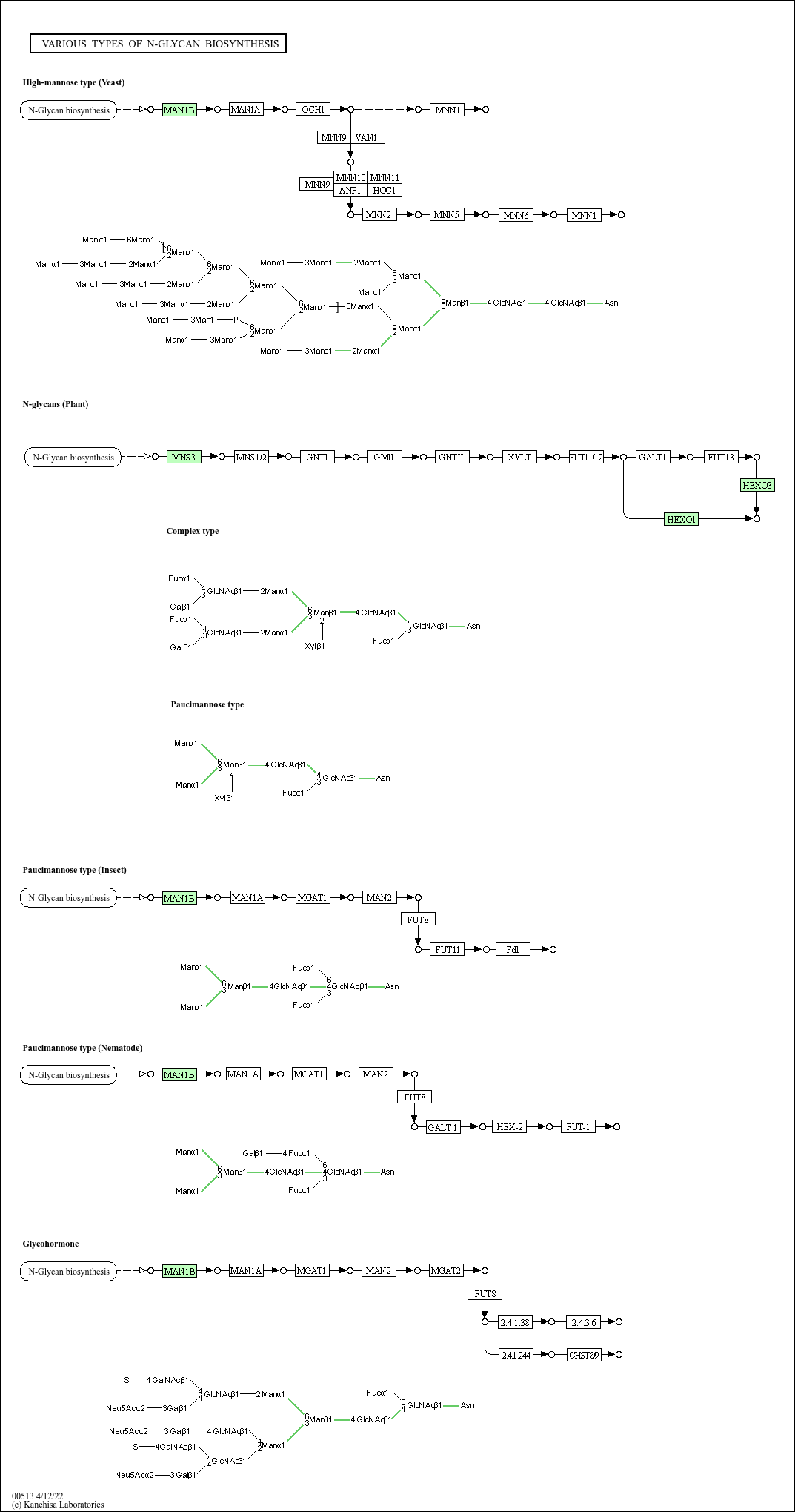 Various types of N-glycan biosynthesis - Psilocybe cubensis (magic mushroom)