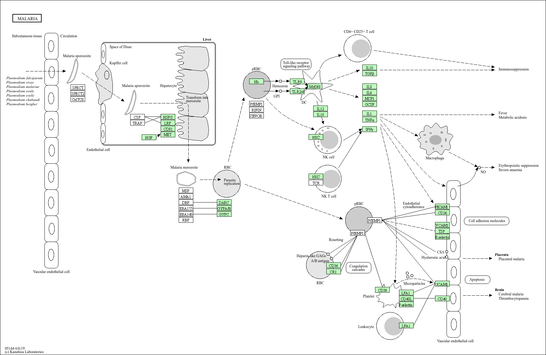 Sporozoite invasion of hepatocytes is mediated by parasite surface protein like CSP. Subsequent infection into red blood cells (RBCs) by merozoites causes malaria disease via aberrant cytokine production and sequestration of parasite-infected red blood cells (pRBCs) to host endothelium. Microvasculature sequestration in the brain brings about cerebral malaria that can results in death or persisting neurological impairment. PfEMP1 has been suggested as the key adhesive molecule of pRBCs.