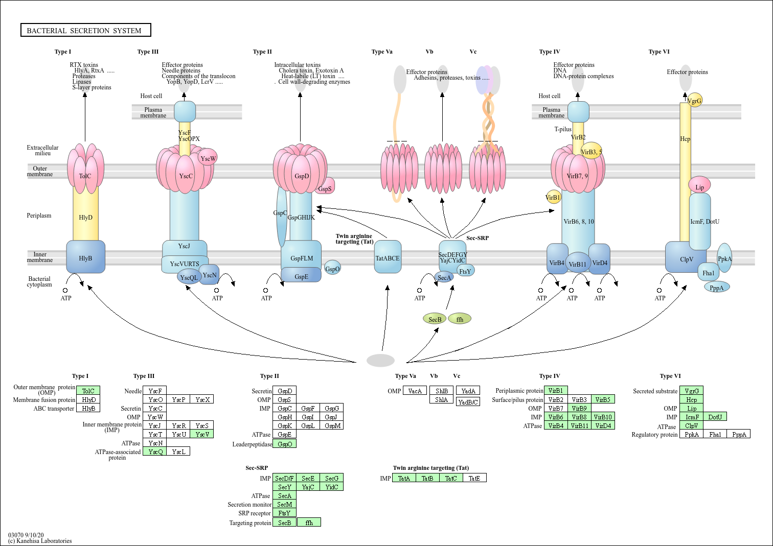 Gram-negative bacteria secrete a wide range of proteins whose functions include biogenesis of organelles, such as pilli and flagella, nutrient acquisition, virulence, and efflux of drugs and other toxins. Six distinct secretion systems have been shown to mediate protein export through the inner and outer membranes of Gram-negative bacteria. These pathways are highly conserved throughout the Gram-negative bacterial species. In Gram-positive bacteria, secreted proteins are commonly translocated across the single membrane by the Sec pathway or the two-arginine (Tat) pathway.
