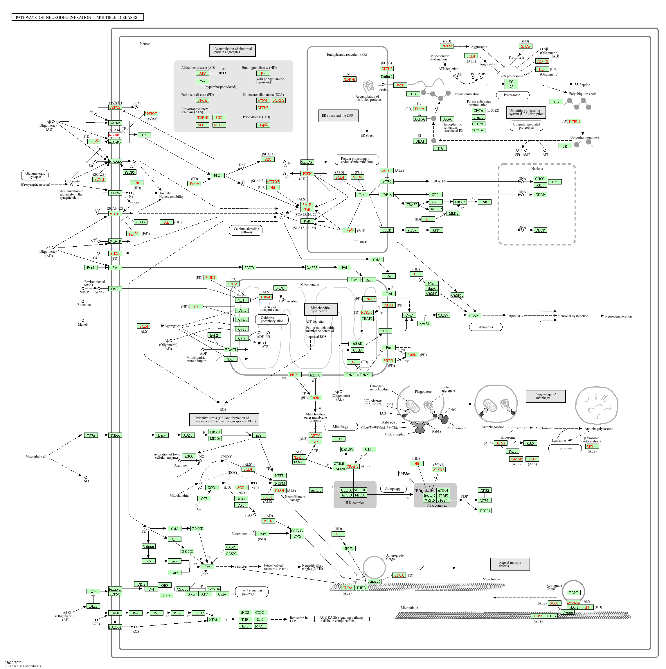 Neurodegeneration is generally defined as progressive, irreversible loss of neurons, which may affect either the peripheral or central nervous system (CNS). Neurodegenerative diseases (NDs) include highly debilitating illnesses, such as Alzheimer (AD), Parkinson disease (PD), amyotrophic lateral sclerosis, Huntington disease, spinocerebellar ataxias, and prion diseases (PrD). The hallmark event, which is thought to be at the root of these diseases, is the progressive accumulation of misfolded protein aggregates. Major basic processes include abnormal protein dynamics due to deficiency of the ubiquitin-proteosome-autophagy system, oxidative stress and free radical formation, endoplasmic reticulum stress, mitochondrial dysfunction and (secondary) disruptions of axonal transport.