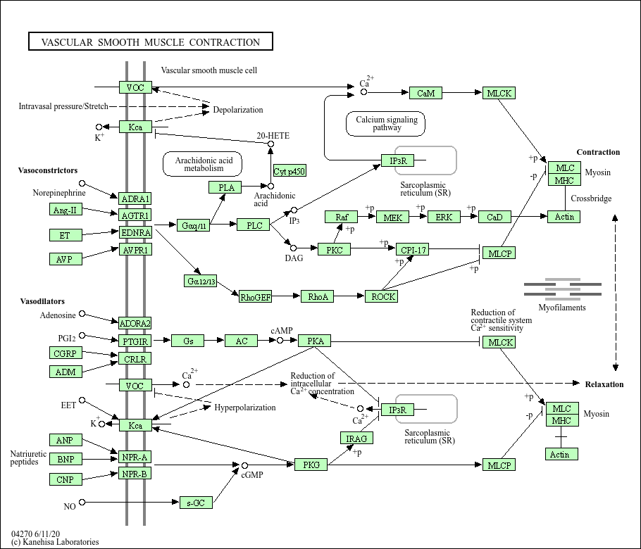 The vascular smooth muscle cell (VSMC) is a highly specialized cell whose principal function is contraction. On contraction, VSMCs shorten, thereby decreasing the diameter of a blood vessel to regulate the blood flow and pressure.