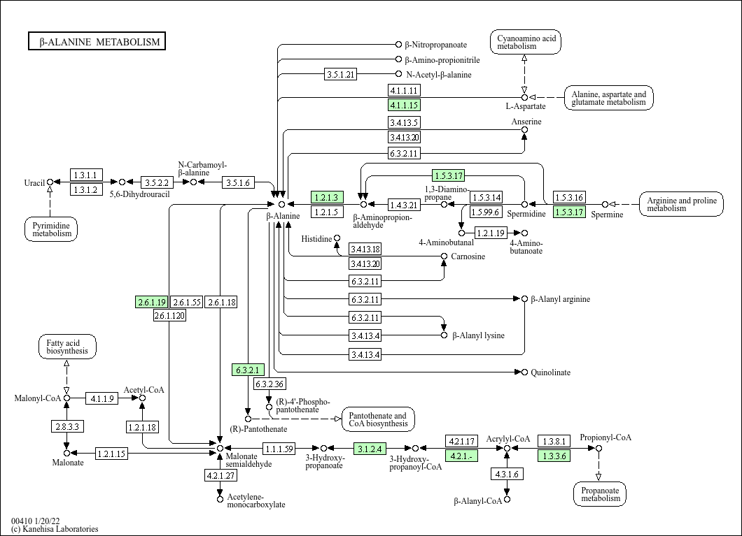 beta-Alanine metabolism - Saccharomyces cerevisiae (budding yeast)