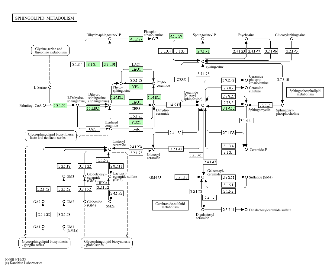 Sphingolipid metabolism - Saccharomyces cerevisiae (budding yeast)