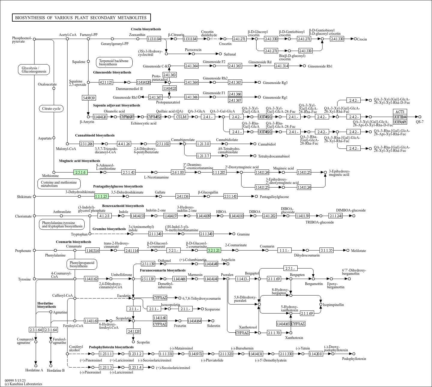 Including: Crocin biosynthesis, Ginsenoside biosynthesis, Saponin adjuvant biosynthesis, Cannabidiol biosynthesis, Mugineic acid biosynthesis, Pentagalloylglucose biosynthesis, Benzoxazinoid biosynthesis, Gramine biosynthesis, Coumarin biosynthesis, Furanocoumarin biosynthesis, Hordatine biosynthesis, Podophyllotoxin biosynthesis