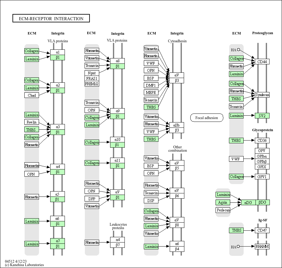 The extracellular matrix (ECM) consists of a complex mixture of structural and functional macromolecules and serves an important role in tissue and organ morphogenesis and in the maintenance of cell and tissue structure and function. Specific interactions between cells and the ECM are mediated by transmembrane molecules, mainly integrins and perhaps also proteoglycans, CD36, or other cell-surface-associated components. These interactions lead to a direct or indirect control of cellular activities such as adhesion, migration, differentiation, proliferation, and apoptosis. In addition, integrins function as mechanoreceptors and provide a force-transmitting physical link between the ECM and the cytoskeleton. Integrins are a family of glycosylated, heterodimeric transmembrane adhesion receptors that consist of noncovalently bound alpha- and beta-subunits.
