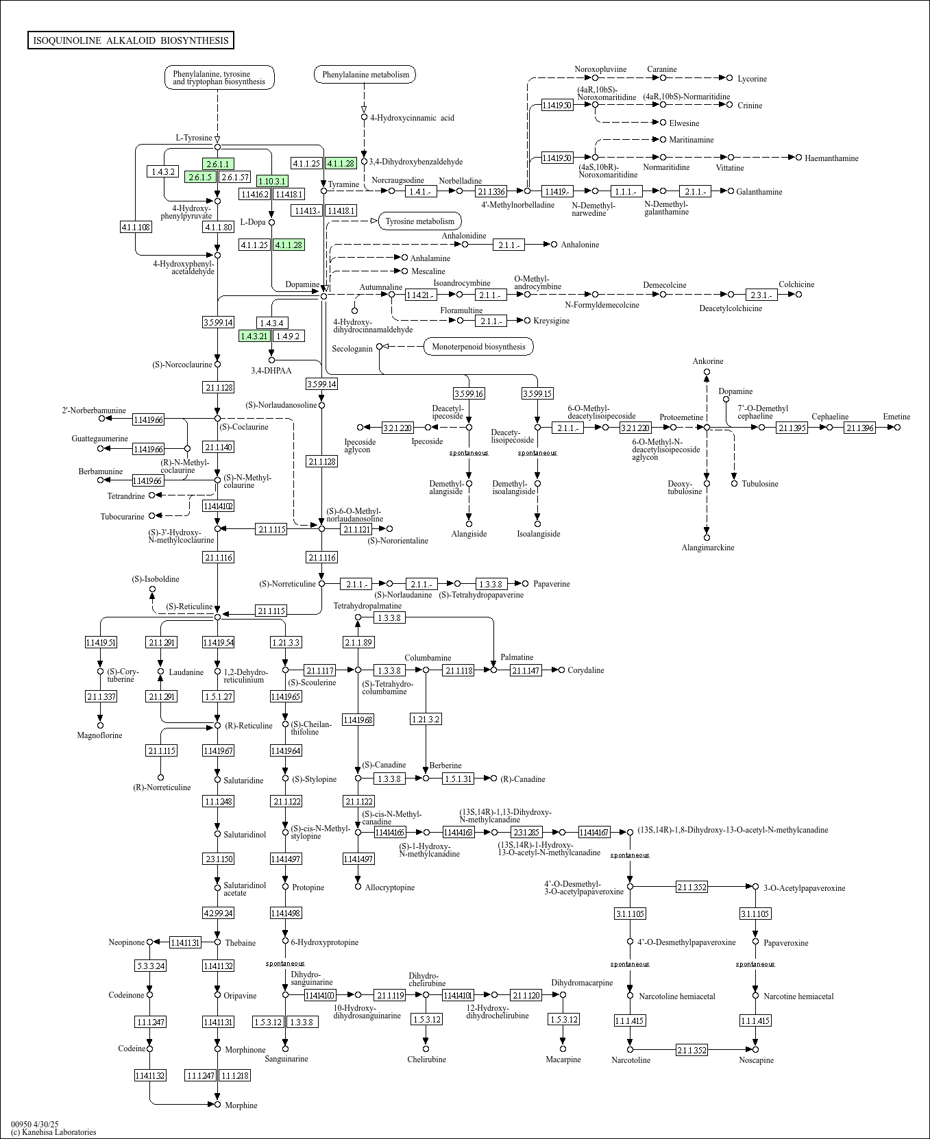 Isoquinoline alkaloids are tyrosine-derived plant alkaloids with an isoquinoline skeleton. Among them benzylisoquinoline alkaloids form an important group with potent pharmacological activity, including analgesic compounds of morphine and codeine, and anti-infective agents of berberine, palmatine, and magnoflorine. Biosynthesis of isoquinoline alkaloids proceeds via decarboxylation of tyrosine or DOPA to yield dopamine, which together with 4-hydroxyphenylacetaldehyde, an aldehyde derived from tyrosine, is converted to reticuline, an important precursor of various benzylisoquinoline alkaloids.